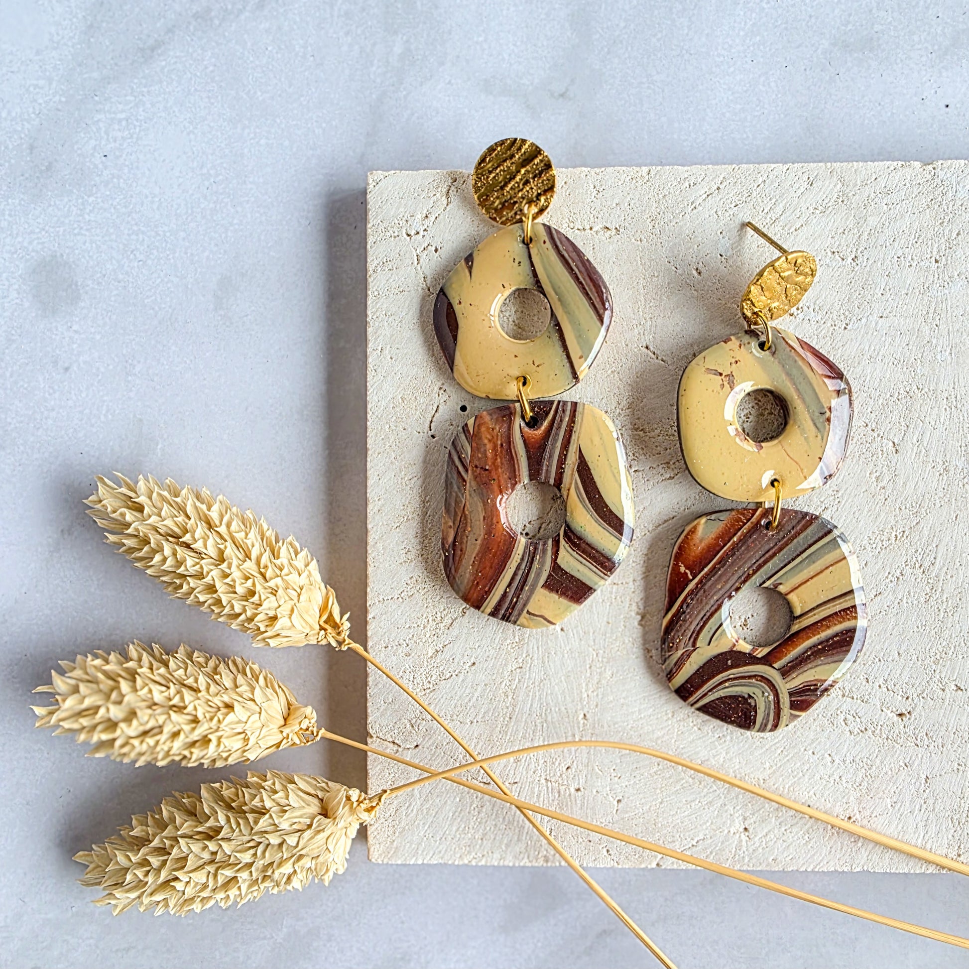 De oorbellen zijn gemaakt uit polymeerklei die als eigenschap heeft vederlicht te zijn. Daarnaast is polymeerklei is ook zéér duurzaam. Alle oorbellen zijn afgewerkt met een laagje UV resin, tenzij het design anders is, waardoor u er nog langer zult kunnen van genieten én ze een prachtige glans hebben.